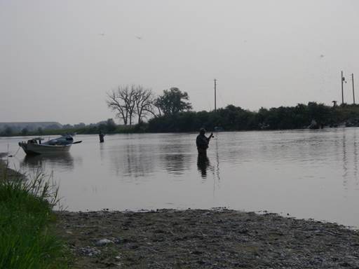 When we awoke on the morning of the third day the sky was a strange gray color and the sun appeared blood red through a thick blanket of smoke. Clouds of tricos hovered just over the water and this morning they dropped to the water. Despite gusty southwest winds the next couple hours a steady stream of tiny black and white flies covered the water and the trout rose steadily. Most of the time one of us was playing a fish and when the spinner fall waned the fish continued to rise sporadically and when the wind would subside it was possible to pick up an occasional fish. We waited, hoping that we would get a hatch of the tiny olive Baetis mayflies but they never materialized. Looking at a four hour drive home we pulled off the river at 5 pm.