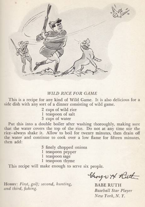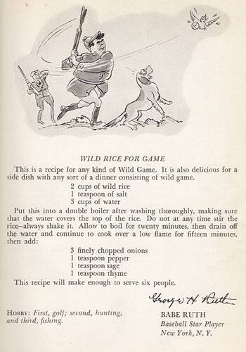 Here’s another recipe from my father’s old book entitled, "Famous Sportsmen’s Recipes," compiled by Jessie Marie DeBoth. The book by copyrighted in 1940 by the author but there is no indication that it was professionally published. I am assuming that it was self published by some ‘vanity’ press.