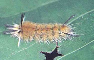 The Spotted tussock moth caterpillars feed on a variety of food plants including forest trees such as willows, red maples and poplars.