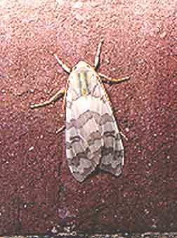 Pale Tussock Tiger Moths emerge from cocoons the following spring. The under-wings are a plain, pale yellow and the moths generally resemble the image of Lophocampa maculata but coloration is much paler. Wings almost look like they are coated with thin wax layer rather than normal moth wing scales.