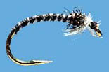 Midges undergo complete metamorphosis. The larvae develop from eggs and turn into pupae before they emerge as adults. Trout eat larvae, pupae, emerging adults and adults: all imitated with small “nymph” and dry-fly patterns. Midges flies are small, and hook sizes ranging from #16 to #22 will normally be required to match the natural size closely. There are some larger species-up to size #12-in some waters. And some are real small-#26!