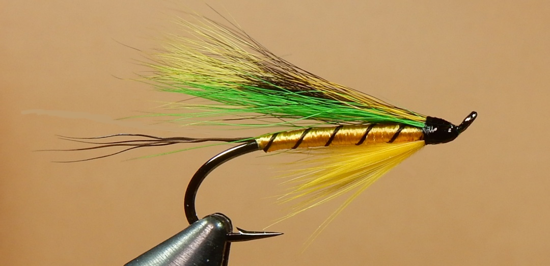 Wing - Green bucktail tied low over the body, with an over wing of dyed yellow gray squirrel tail