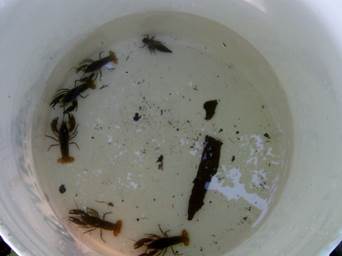 Two fellows from our TU chapter seined the little stream with another ten kids and put all the “bugs” in buckets and they transferred them to tables and into small plastic tubs with aerators and they matched them against three pages of illustrations of different “bugs” next to them.